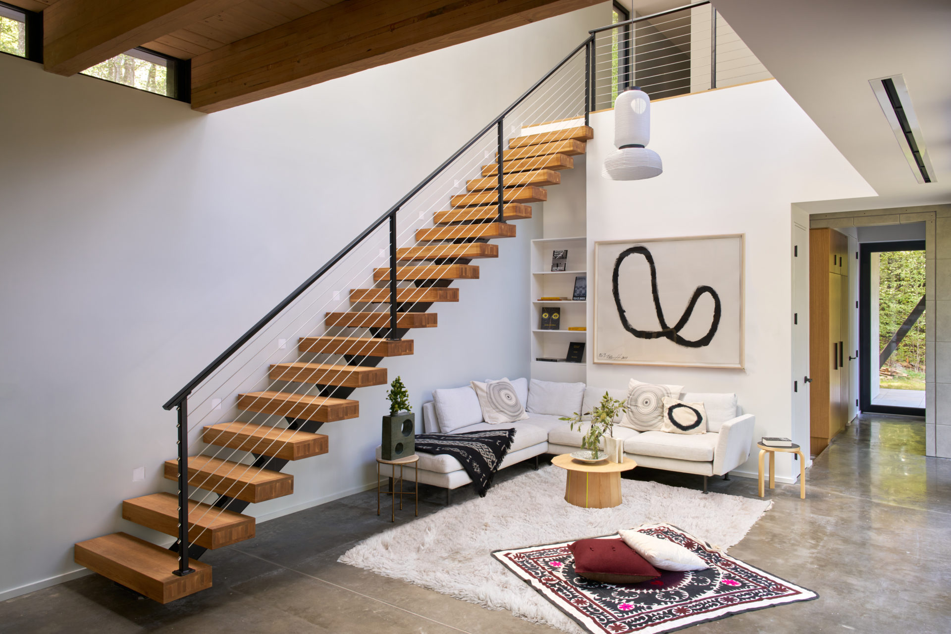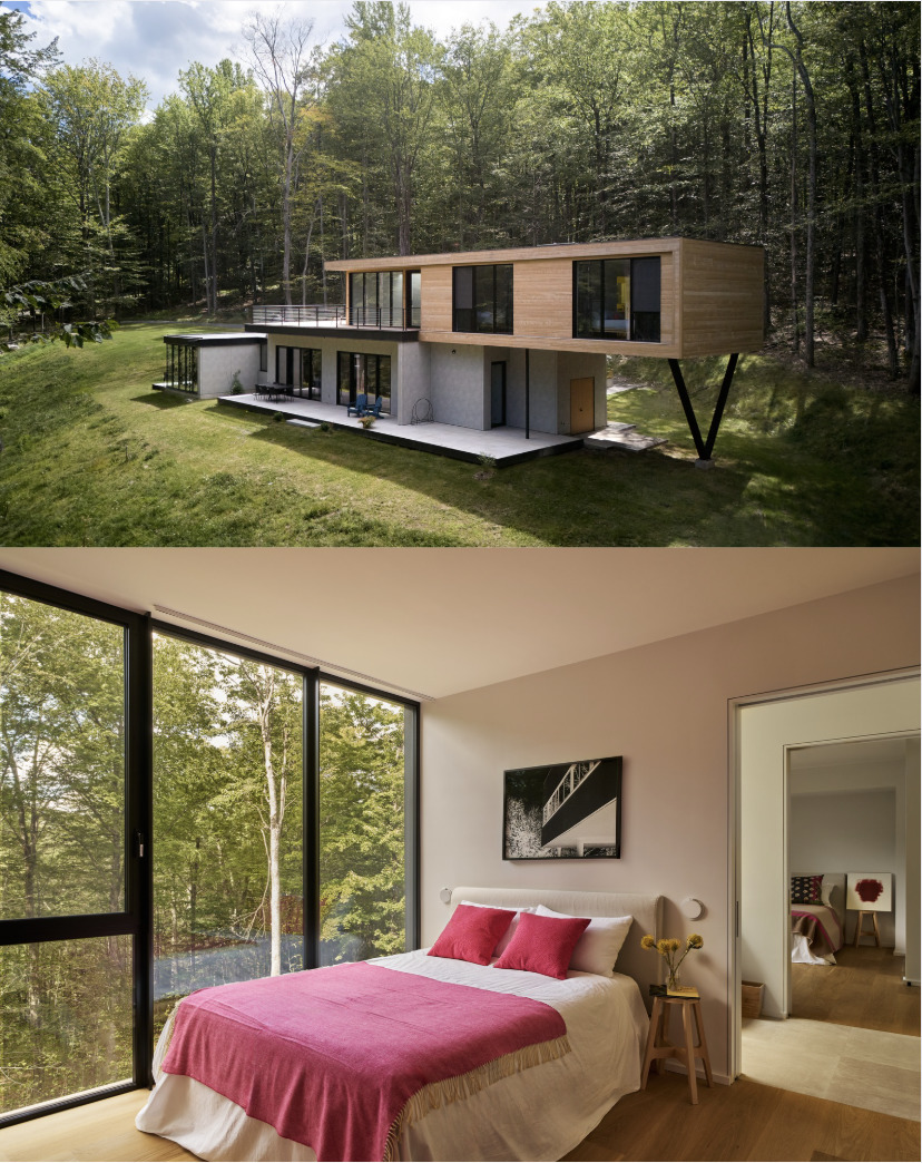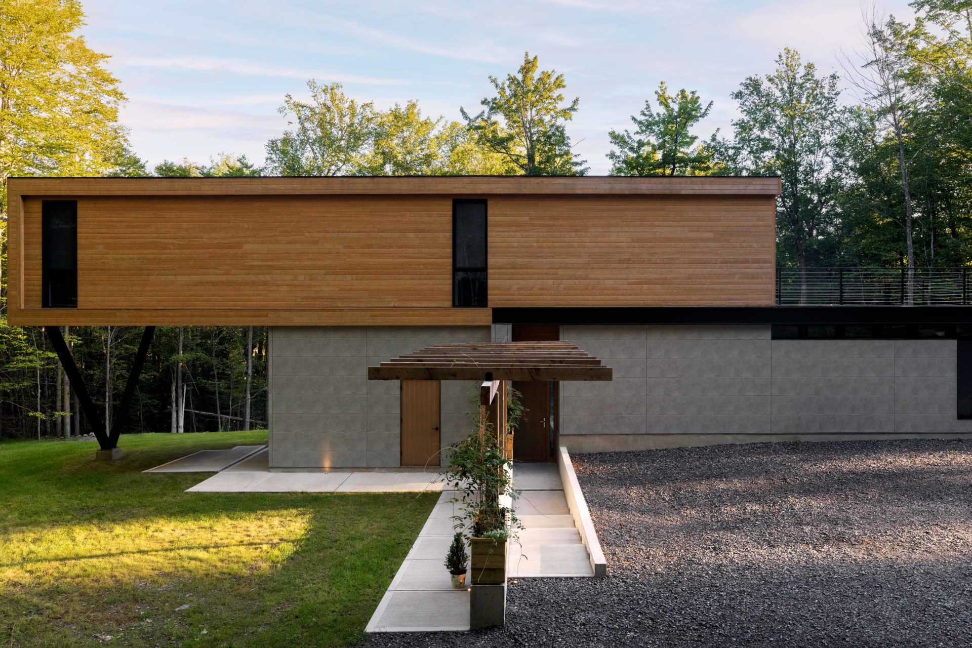 Nestled in the wooded landscape outside Woodstock, New York, Catskills Mountain House is a 2,475-square-foot residence designed to explore an embodied experience of belonging in nature. Designed by architect Suchi Reddy, the home incorporates principles of neuroaesthetics to craft a restorative environment where views, light, materiality, and spatial flow are carefully calibrated to support calm, create connection, and invite discovery and wonder.